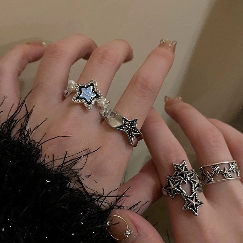 Distressed star metal open ring female retro internet celebrity y2g index finger ring niche design sense high-grade ring fashion