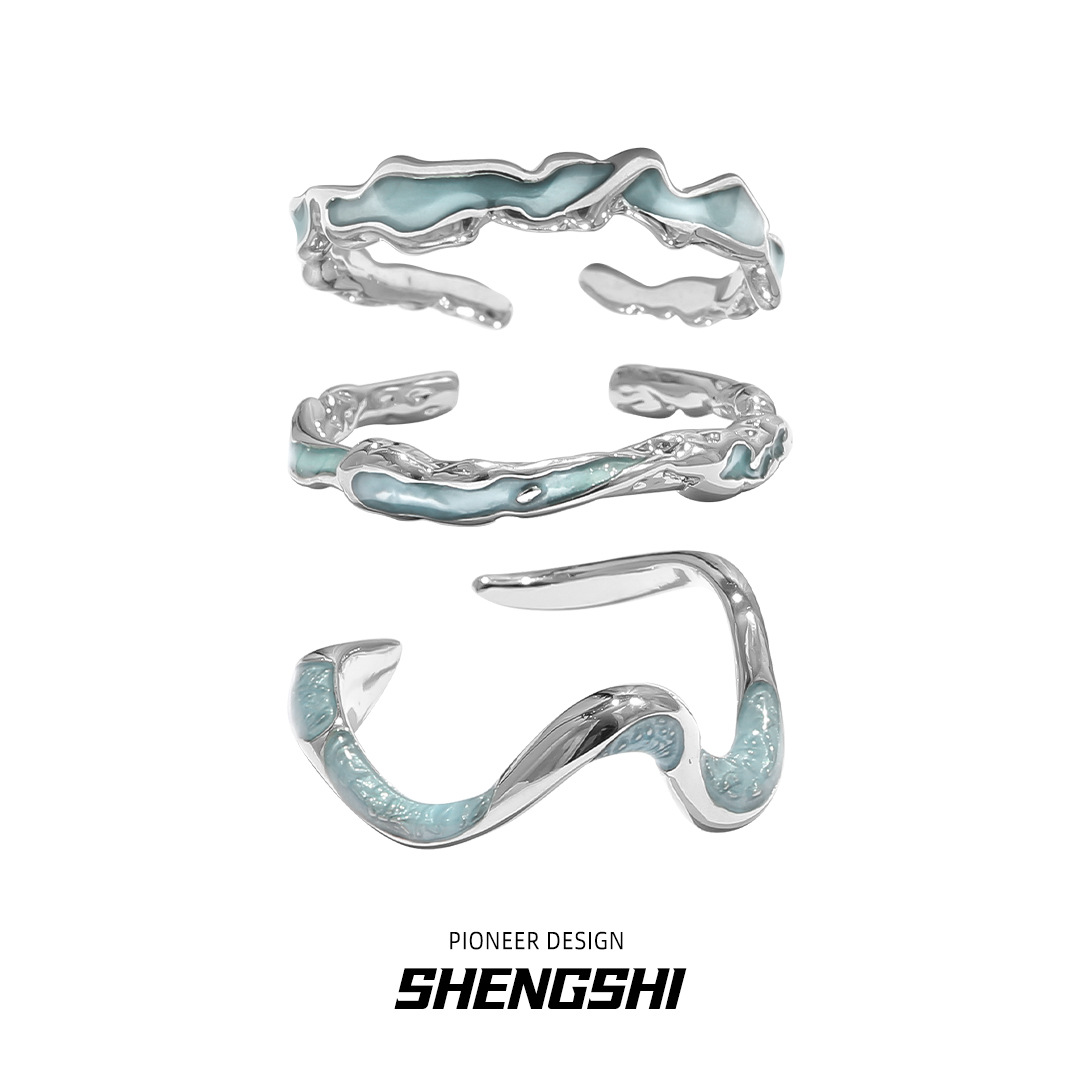 Korean Niche Glacier Blue Lava Ring Fashion Personalized Creative All-match High-end Cold Wind Open Ring for Women
