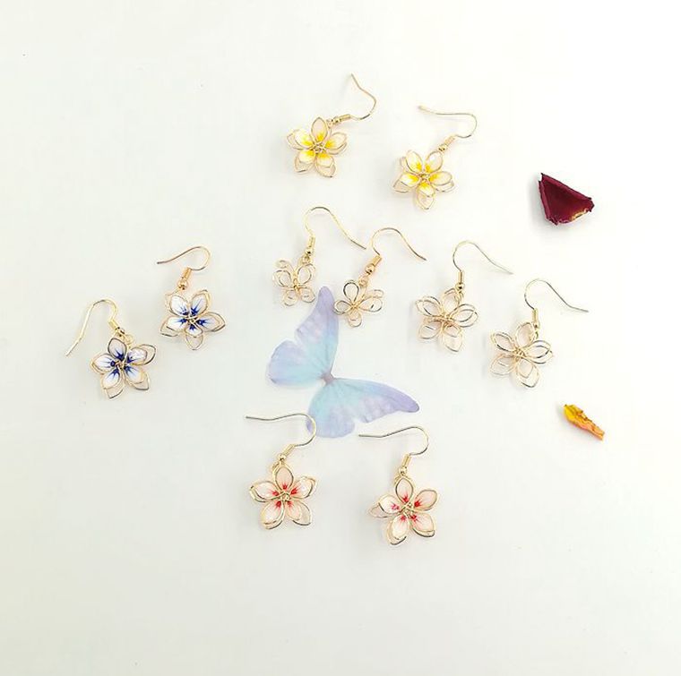 Qingdao Jewelry Japanese Style Handmade Woven Three-Dimensional Hollow Painted Flower Earrings Simple Earrings for Women 2023 Autumn