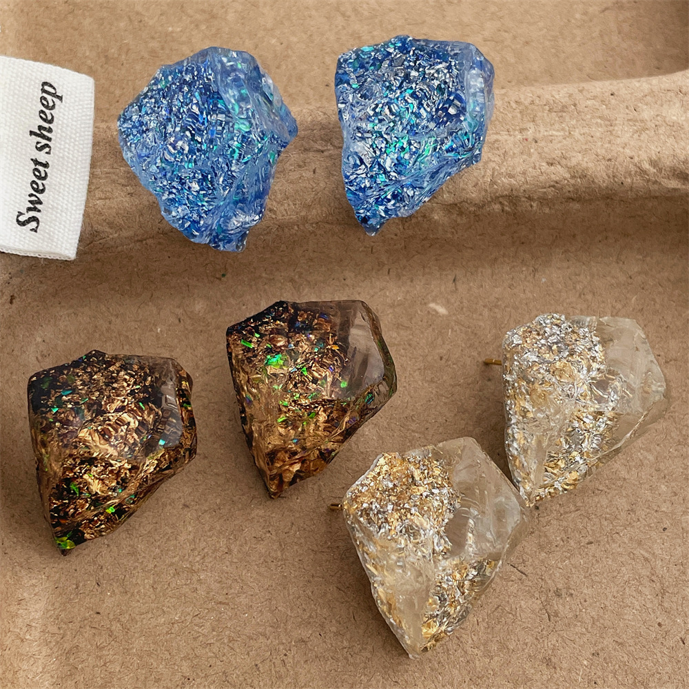 Silver Needle East Gate Same Style High-end Irregular Blue Ice Crystal Earrings Women's Light Luxury Niche Three-dimensional Geometric Earrings