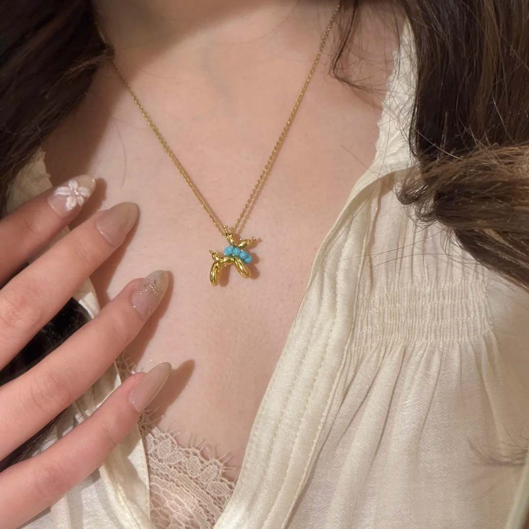 Internet Celebrant Same Style Imitation Sand Gold Balloon Puppy Necklace Pendant DIY Personalized Cartoon All-match Clavicle Chain Necklace for Girls