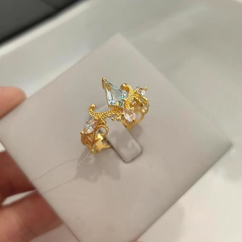 Middle Blue Flash Diamond Cinderella Ring Vintage vintage Court Style Open Finger Ring