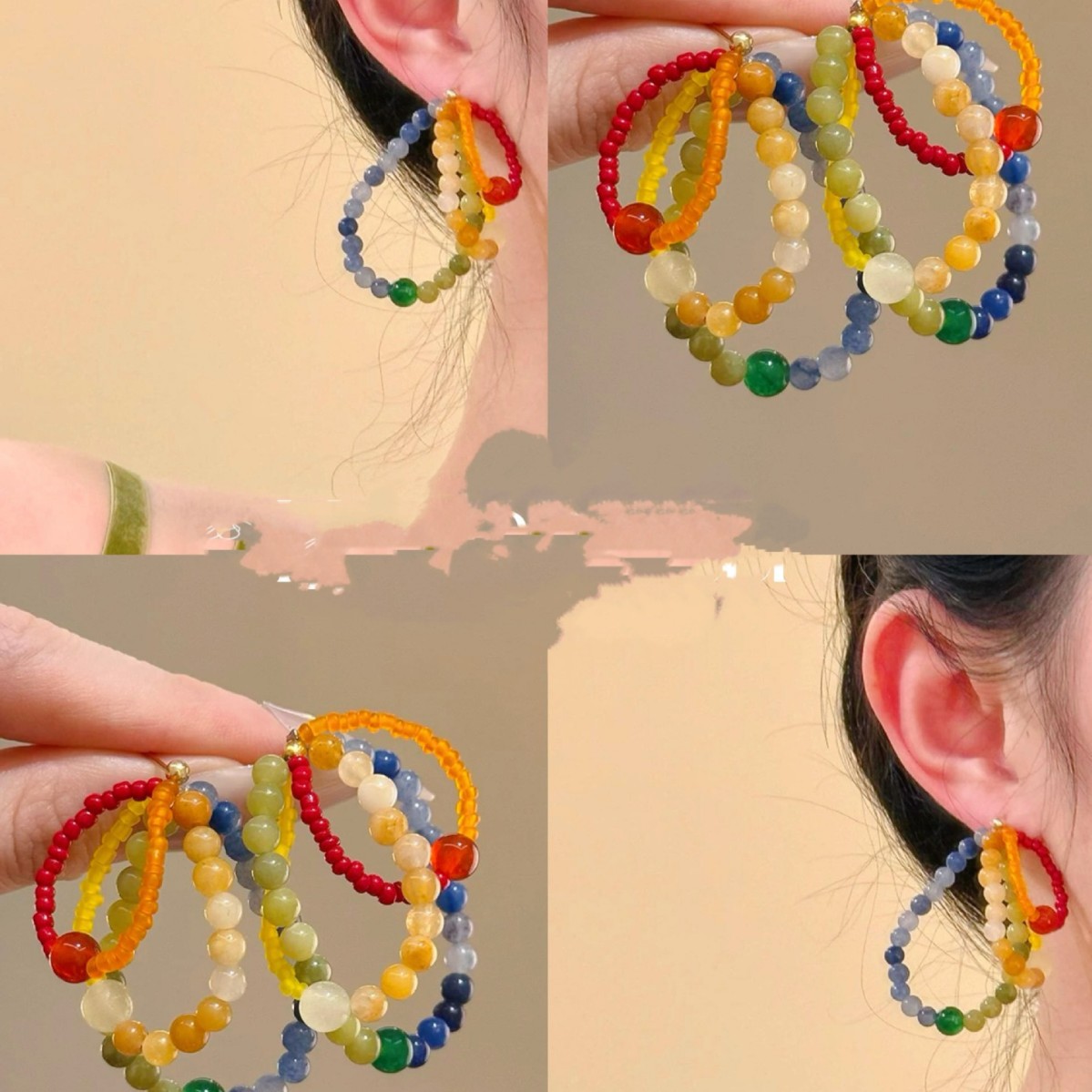 Dopamine Silver Needle Natural Stone Beaded Round Pendant Earrings Small Fresh Earrings Fashionable Versatile Simple Earrings for Women