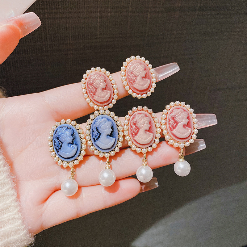 2023 new fashion style retro portrait gentle delicate pearl round brand elegant high-class temperament earrings earrings