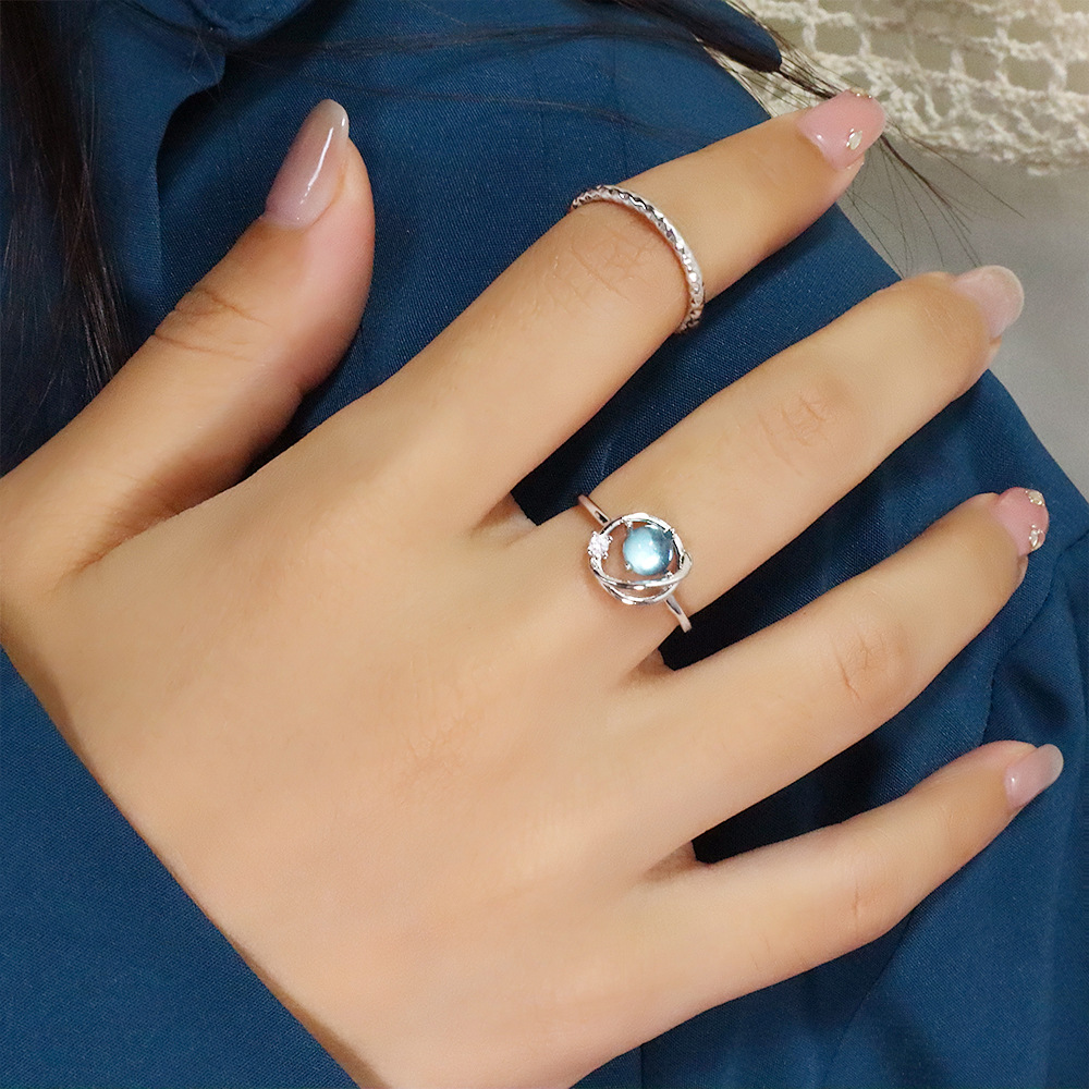 Ancient Cat Ning Ins Cyber Celebrity Imitation Crystal Finger Ring Women's Personalized Fashion Ring Blue Fantasy Planet Open Ring