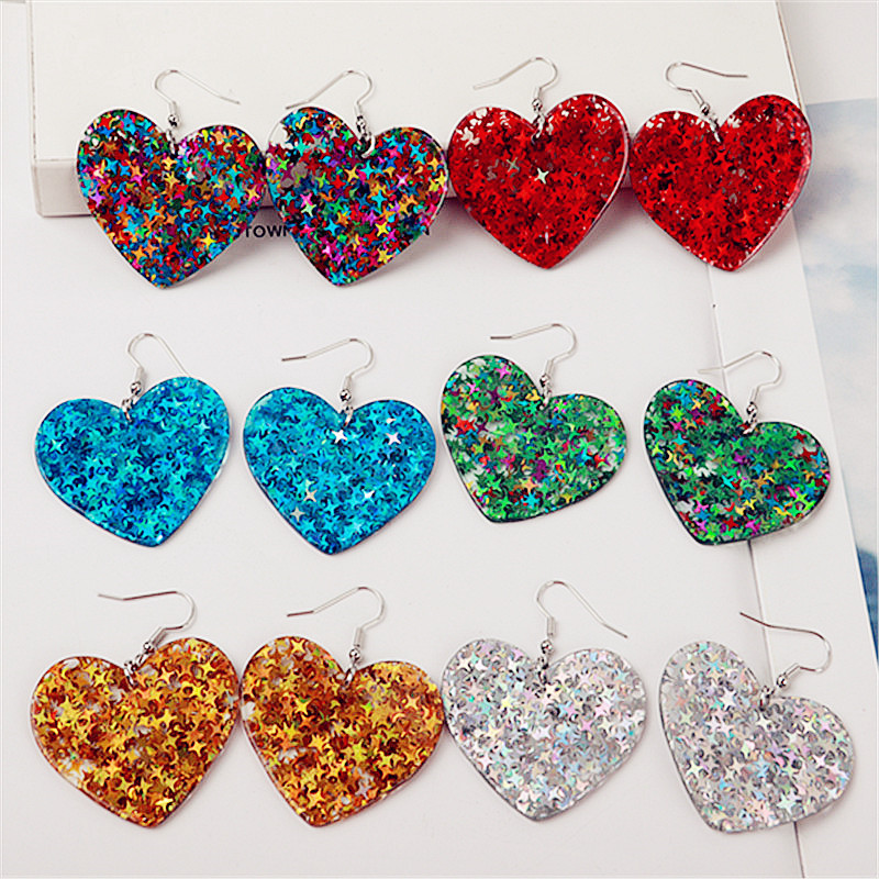 European and American Valentine's Day Heart Love Earrings Laser Five-Star Glitter Sweet Girl Simple Fun Acrylic Earrings