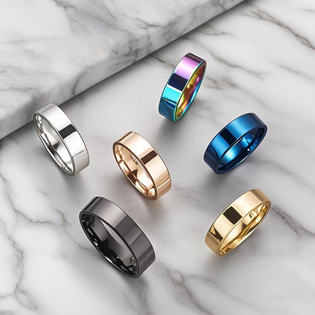 Cross-Border Stainless Steel Ring Jewelry 6mm Inner Ball Outer Flat Personalized Bright Titanium Steel Couple Ring Female Niche Manufacturer