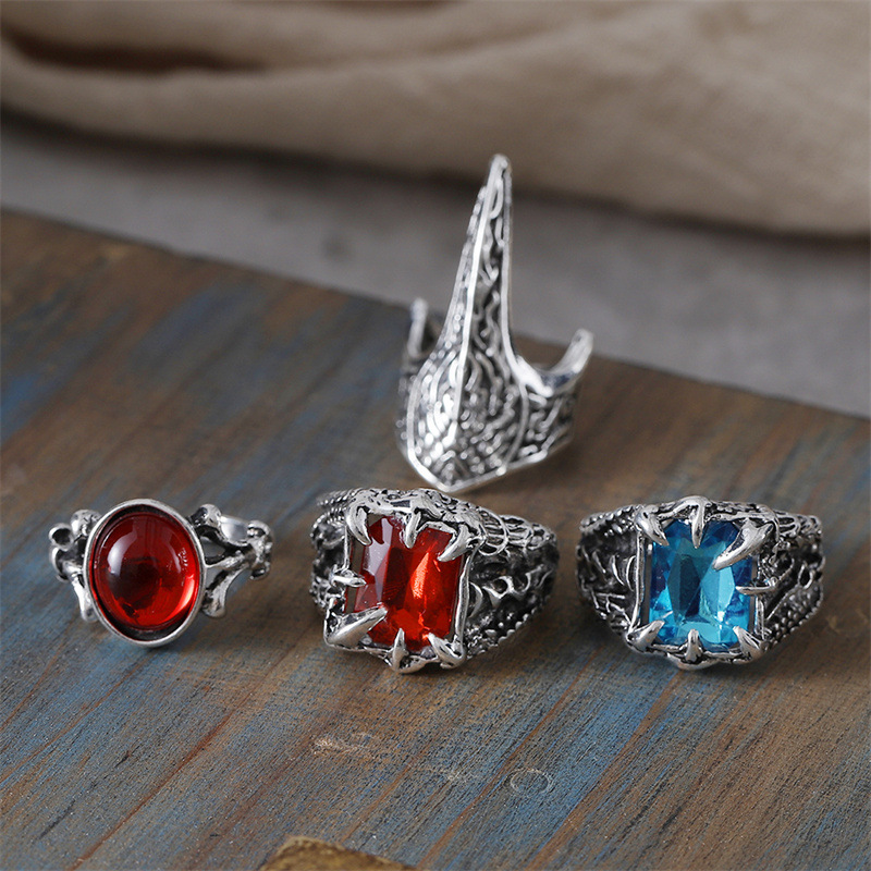 Europe and the United States hot selling domineering retro ring Chinese style alloy dragon claw ring dragon ring Horus eye ring