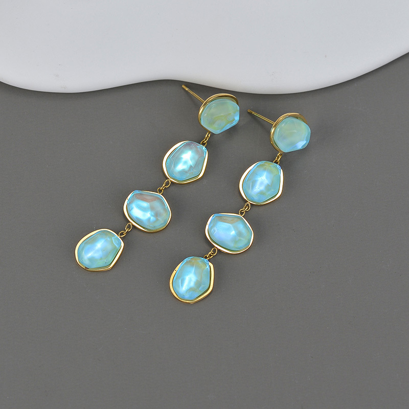 European and American Retro Bohemian Blue Zircon Earrings Niche Design Korean Style Light Luxury Stainless Steel Earrings Wholesale