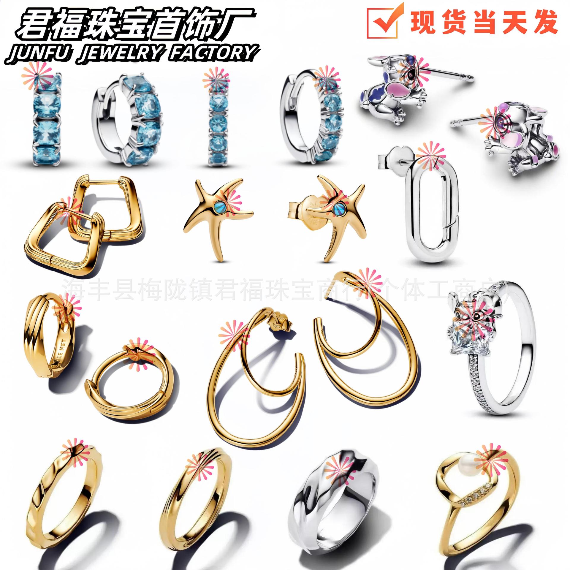 Pan's Cross-Border Best-Selling Retro Gold-Plated Square Small Hoop Earrings Stitch Earrings Ins Blue Simple