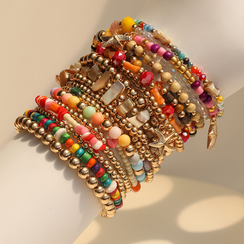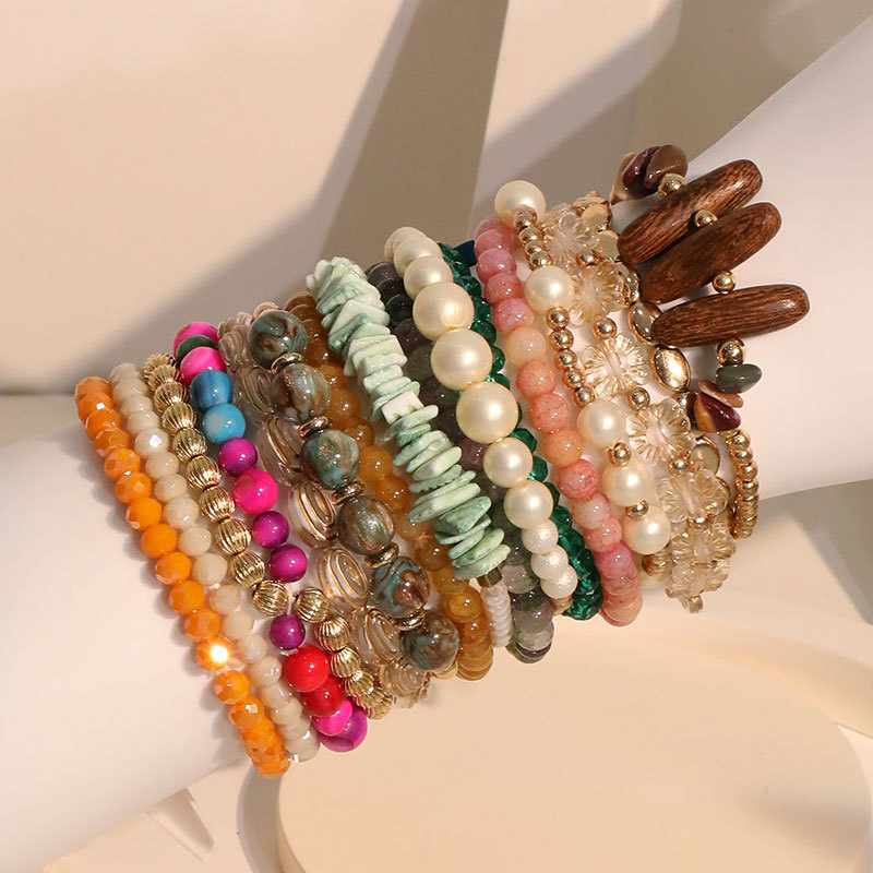16 Pieces/Set Bohemian Style Elastic Beaded Bracelet Stackable Ladies Fashion Bracelet Multi-Piece Set