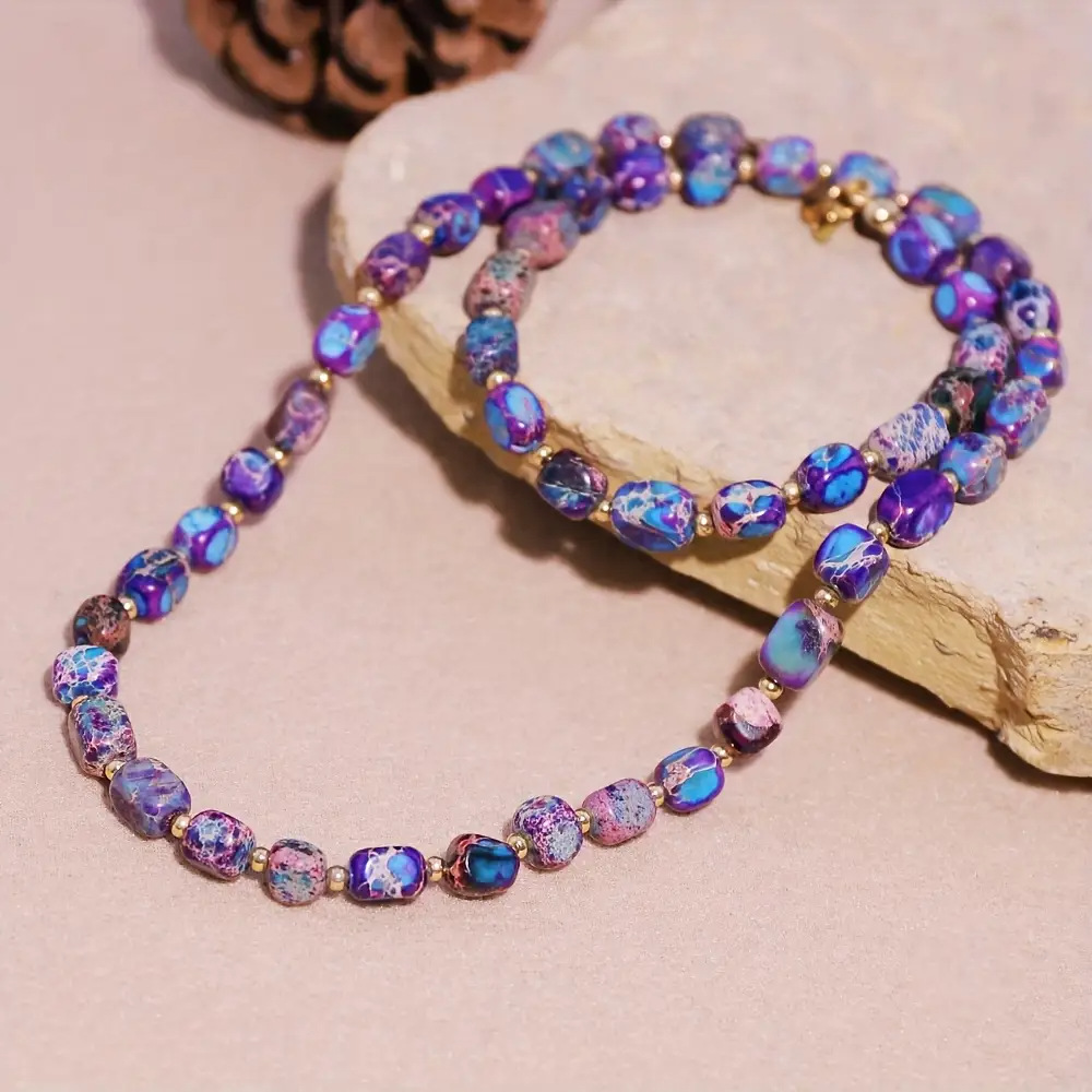 New Bohemian Style Flower Purple Natural Stone Bead Necklace Amazon Cross-Border Best-Selling Quality Jewelry