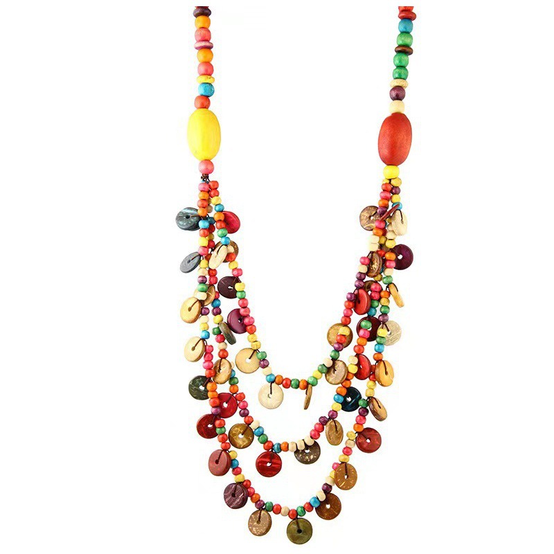 Cross-border European and American bohemian exaggerated long retro ethnic style colorful women's necklace sweater chain beaded wooden beads