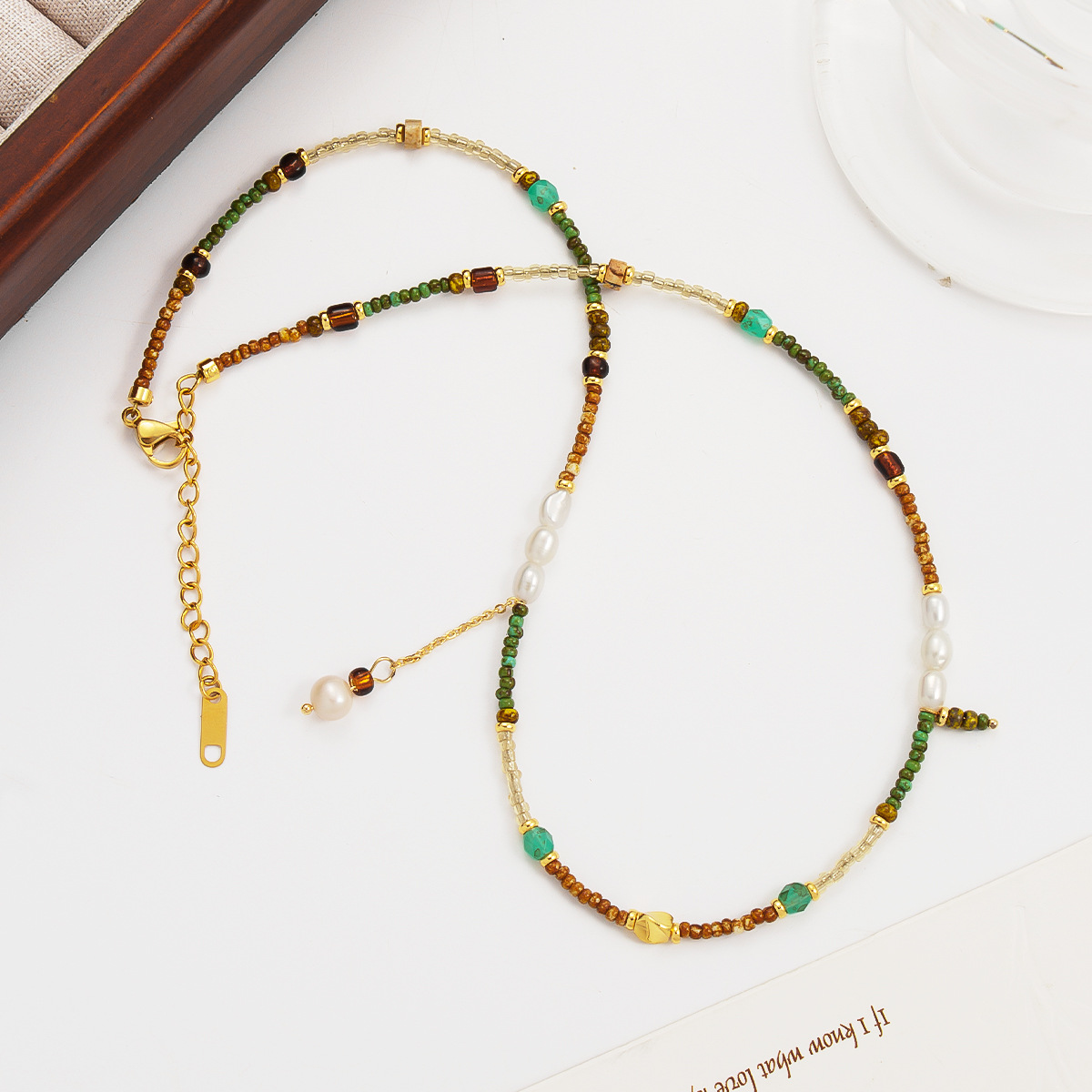 Natural Stone Freshwater Pearl Colorful Rice Beaded Fine Necklace Single Layer Overlapping Bohemian Vintage Clavicle Chain