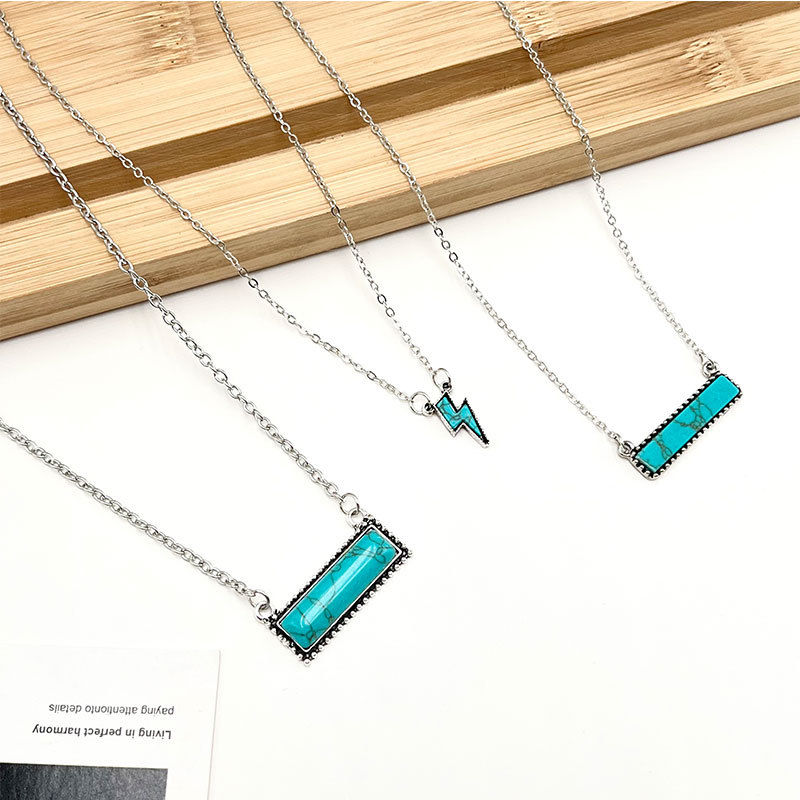 European and American cross-border turquoise necklace women's retro Bohemian ethnic style rectangular lightning pendant necklace wholesale