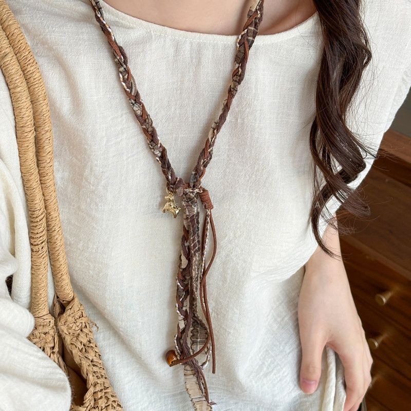 Ethnic Style Woven Pony Necklace for Women, Unique Design, Retro Fabric Sweater Chain, Bohemian Fashion Accessories