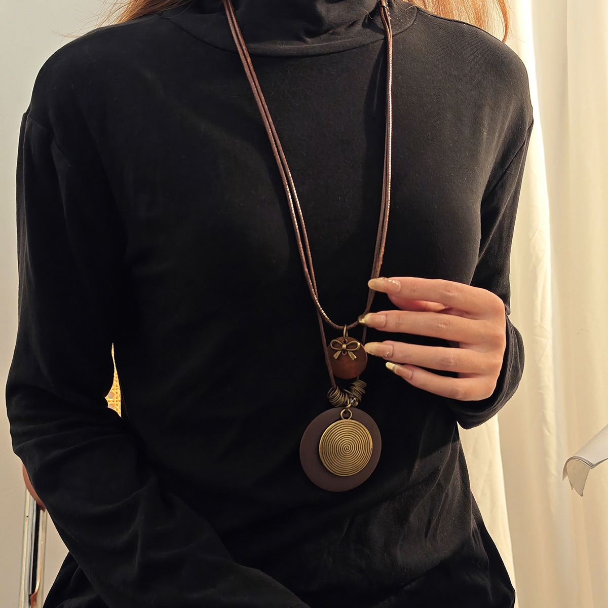 Cross-Border European and American Exaggerated Bohemian Large Disc Wooden Necklace Retro Sweater Chain Personalized Long Catwalk Accessories