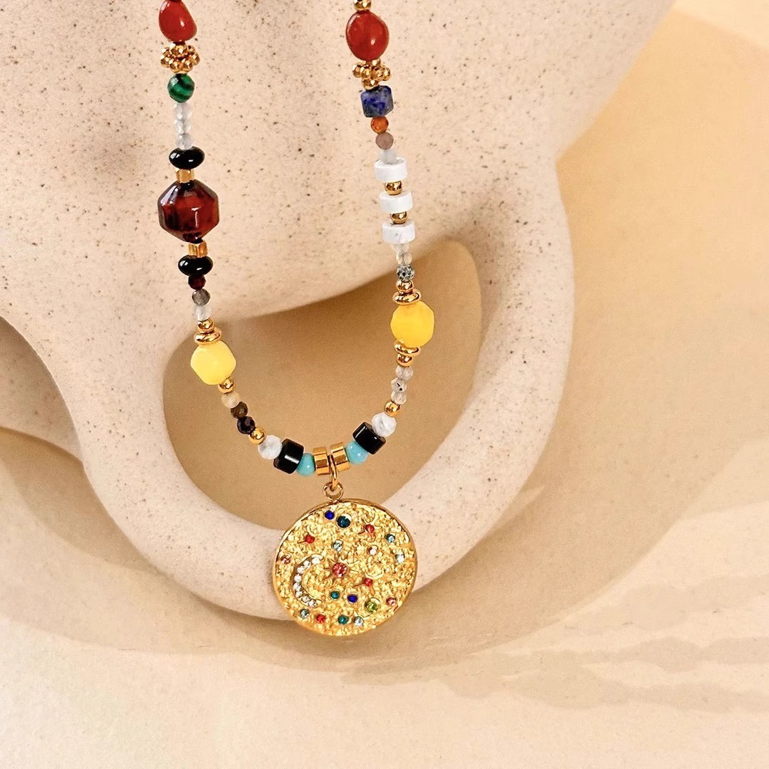 Bohemian ethnic style retro beaded necklace Duobao natural stone personality niche original design jewelry