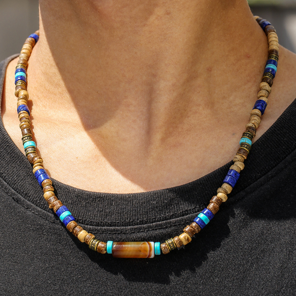 Cross-Border New Product Bohemian Style Natural Stone Coconut Shell Wood Beads Beaded Beach Vacation Simple and Stylish Men's Necklace