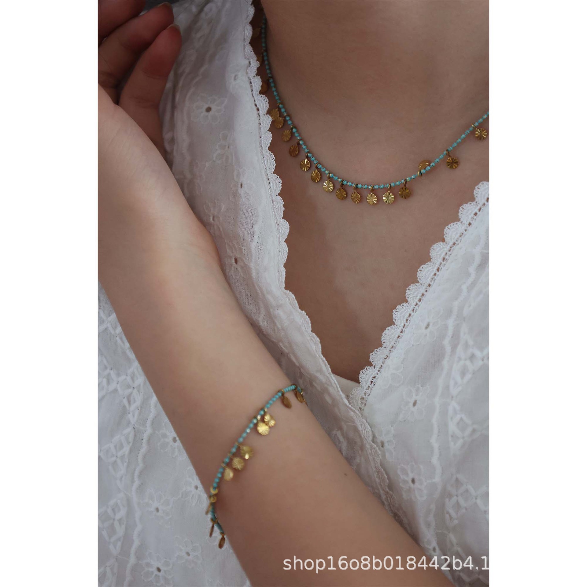 301 French Workshop Stable Bohemian Ethnic Style Handmade Versatile Necklace Rice Beads Natural Turquoise Y8-11
