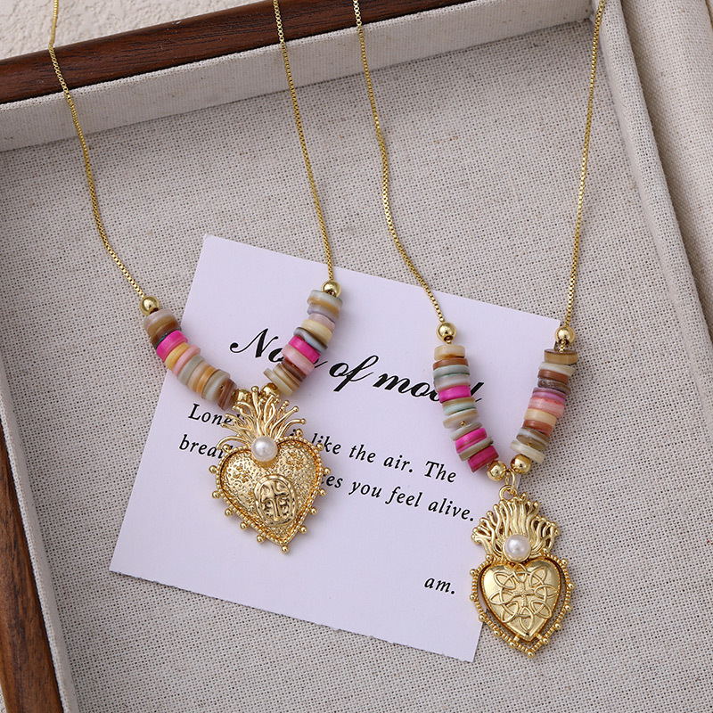 New Retro Niche Dopamine Natural Stone Moon Pendant Beaded Necklace Women's All-match Stacked High-grade Necklace