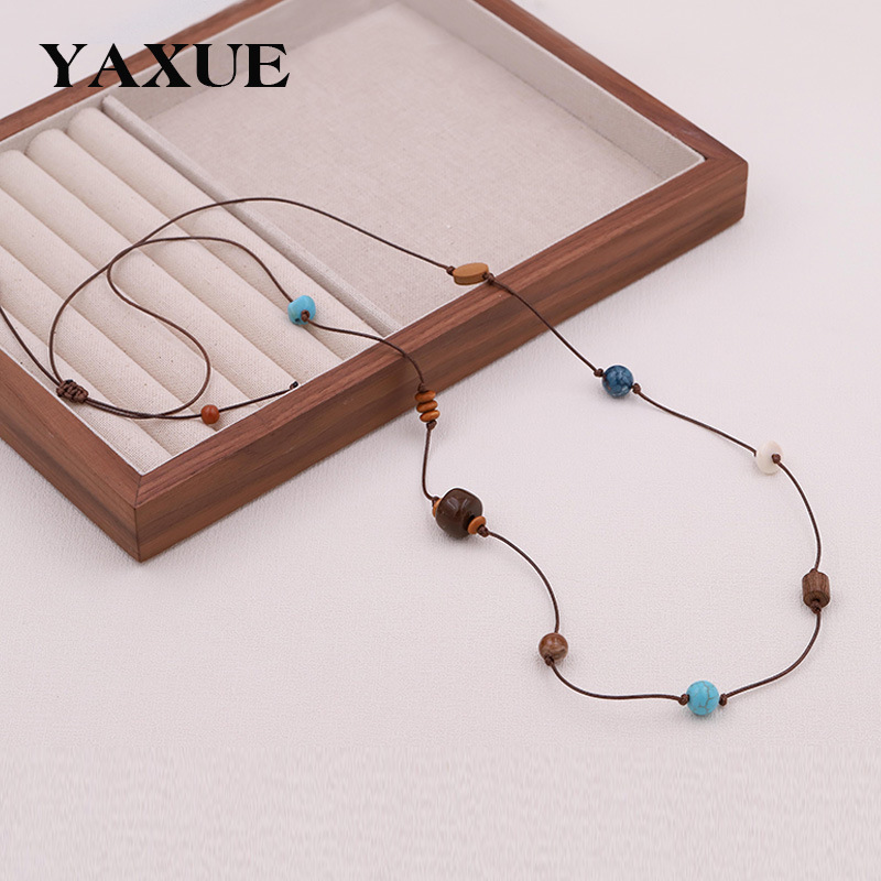 New Chinese Zen Wooden Bead Necklace Vintage Niche Stacked Woolen Chain Mori Style Bohemian Ethnic Style Necklace for Women