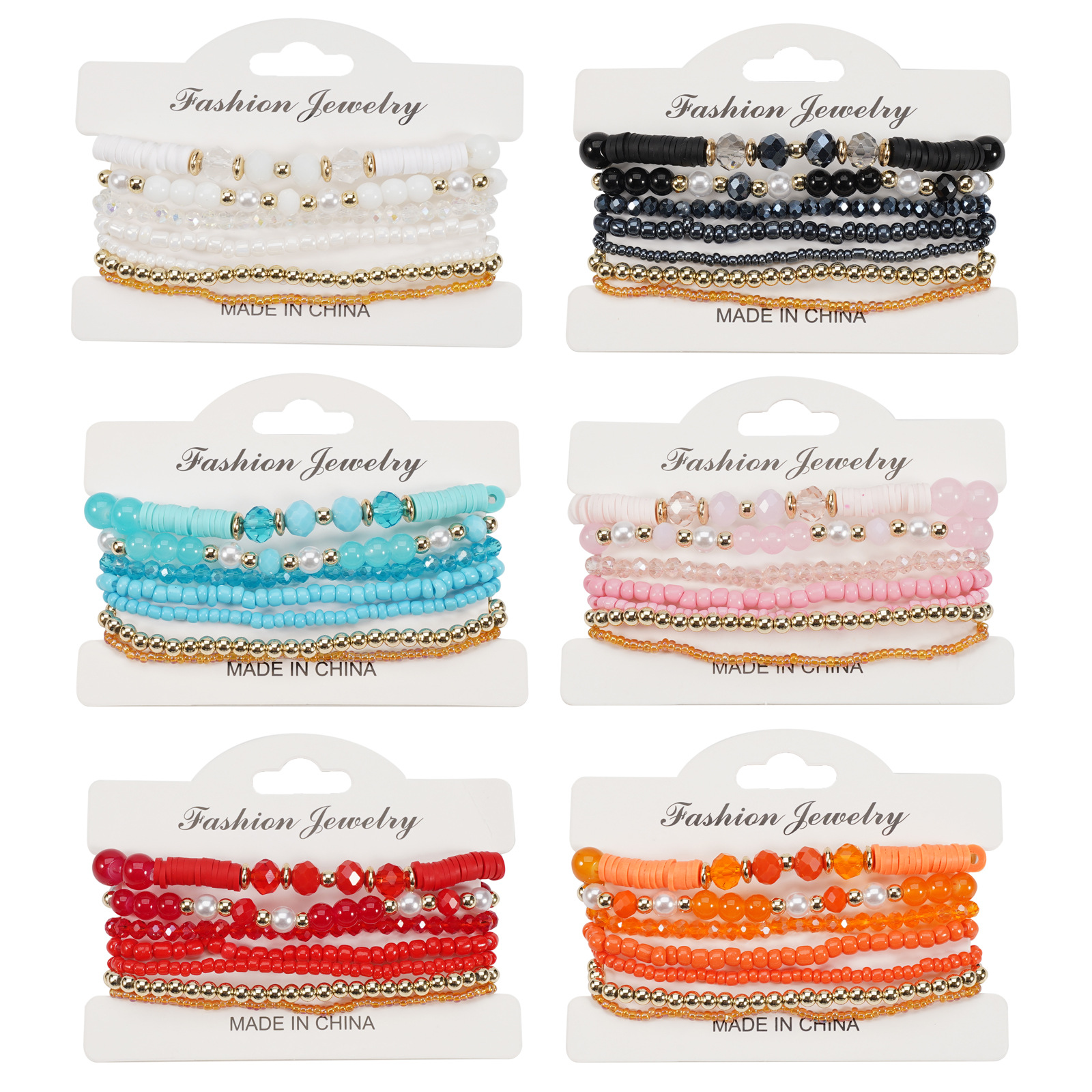Rice Bracelet Big Red 20 3-Li Glass Rice Beads Gradient Bohemian Style Summer Beach Festival Music