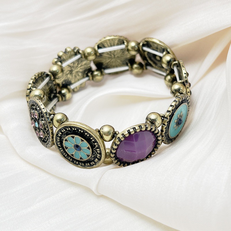 European and American Retro Bohemian Fashion Bracelet with Oil-Drip Rhinestone Inlaid Elastic Cord Bracelet New Jewelry in Stock