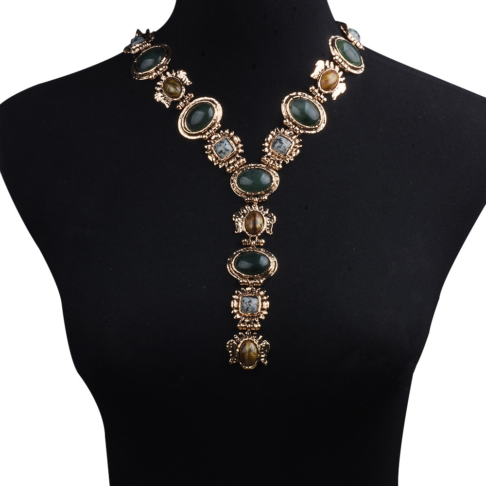 ZA New Vintage Gold and Silver Personality Imitation Natural Stone Resin Necklace Exaggerated European and American Pendant Necklace Bohemian Style