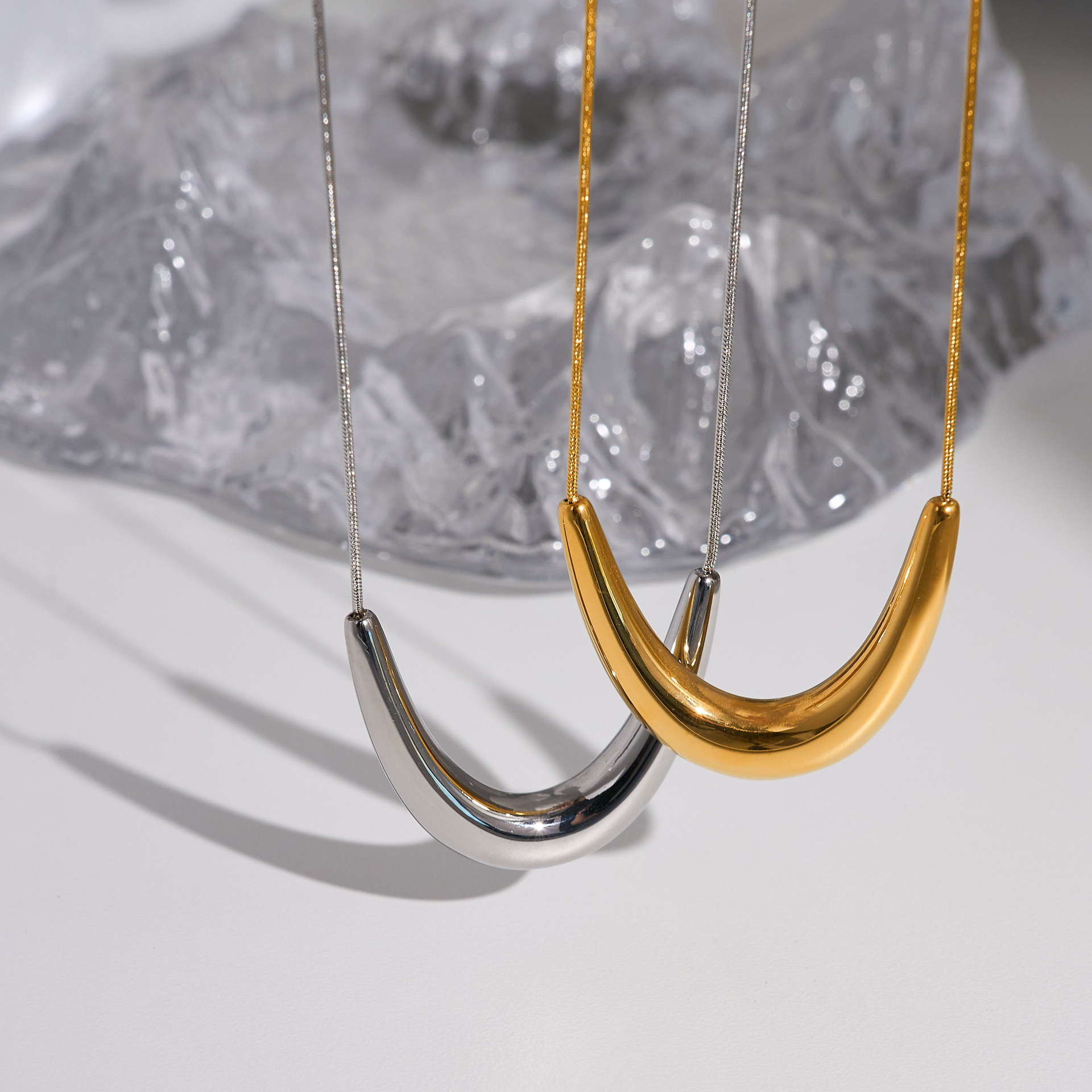 in stock Wholesale European and American INS Cross-border 18k Gold Plated Boho Style POP Titanium Steel Retro Geometric U-Shaped Necklace