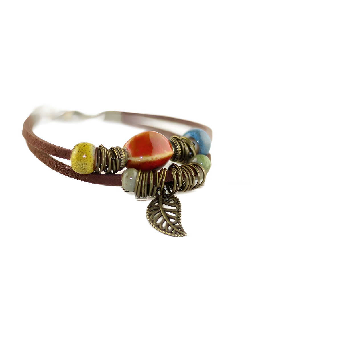Simple Mori-Style Cowhide Rope Ceramic Kiln Bead Bracelet Bohemian Couple Jewelry Handmade Birthday Gift