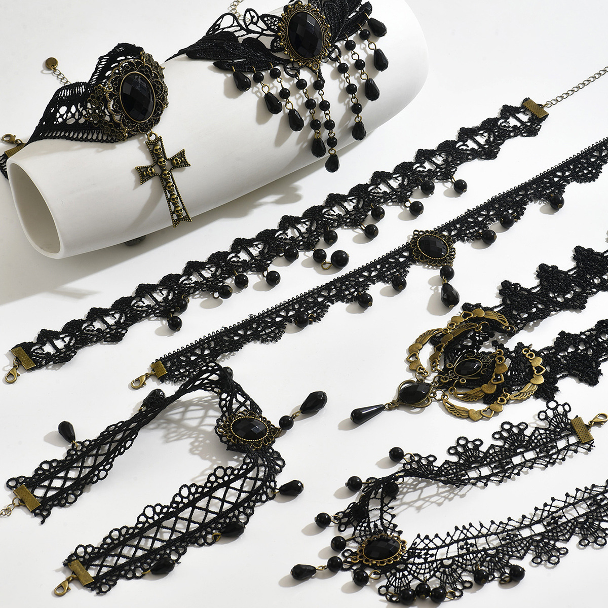 Cross Border Lace Choker Necklace Ins Fashion Design Gothic Dark Style Lace Cross Retro Collar