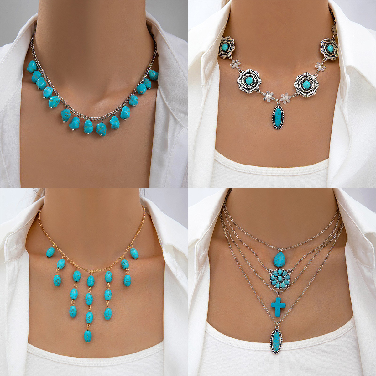 Cross-Border Jewelry Bohemian Style Retro Turquoise Flower Necklace Beach Style Turtle Shell Necklace for Women