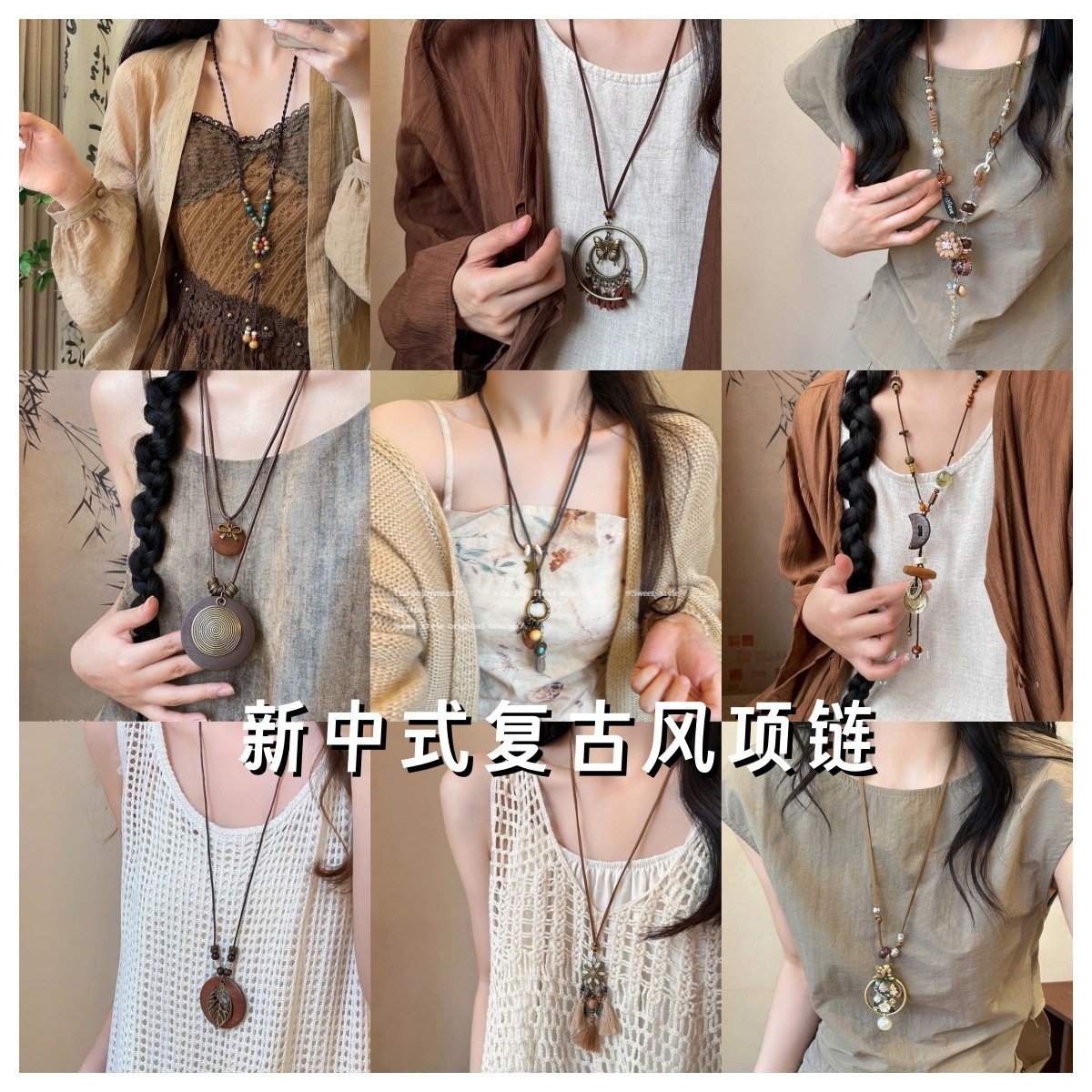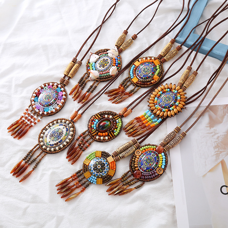 New Bohemian ethnic style vintage necklace sweater chain tassel pendant European and American personality fashion travel shooting