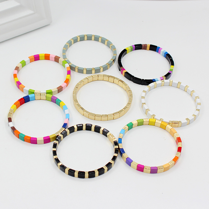 European and American Hot Selling Popular Enamel Alloy Painted Color Simple Bohemian Women's Elastic Bracelet