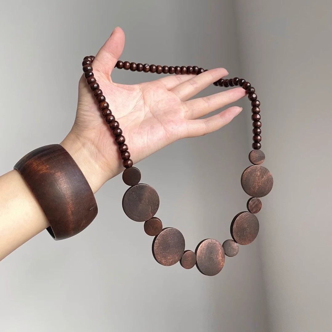 European and American Style Retro Ethnic Style Wooden Necklace Bohemian Long Personalized Bracelet Versatile High-End Accessories for Women