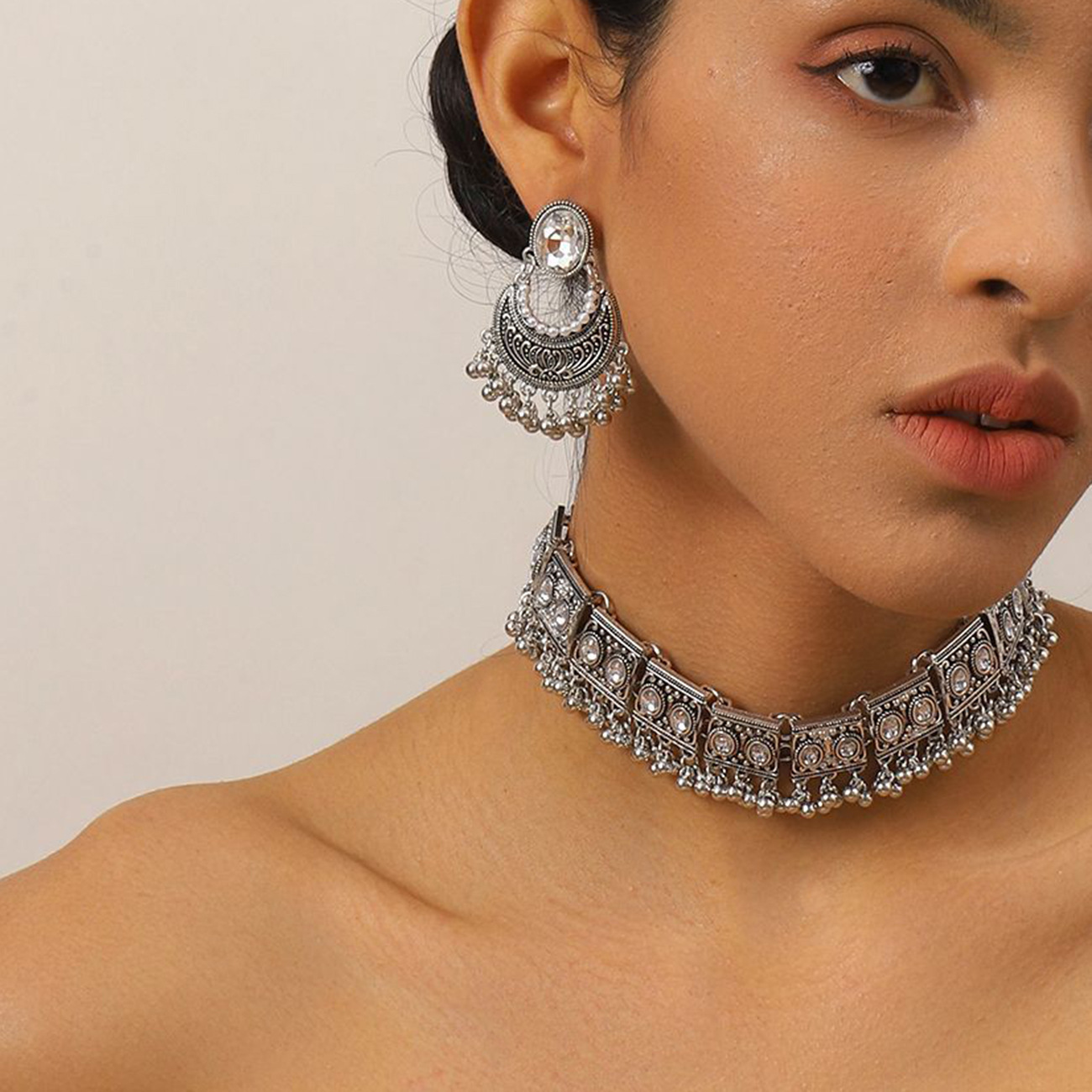 Cross-border Fashion European and American Ethnic Beads Bell Necklace Chain Simple Retro Bohemian Necklace Earrings Geometric suit