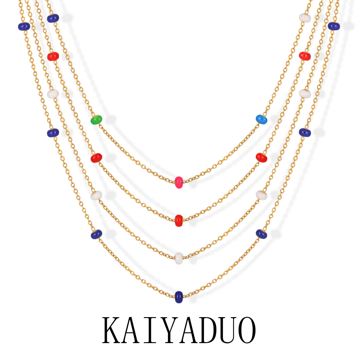 Stainless Steel Chain Plain Chain with Colorful Resin Beads Necklace for Women, Fashionable and Unique Bohemian Style Simple Clavicle Chain