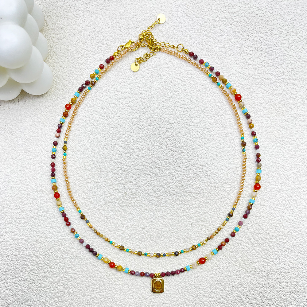 Colorful Natural Stone Titanium Steel Beaded Personalized Accessories Bohemian Ethnic Style Necklace Fashion Bracelet Jewelry suit