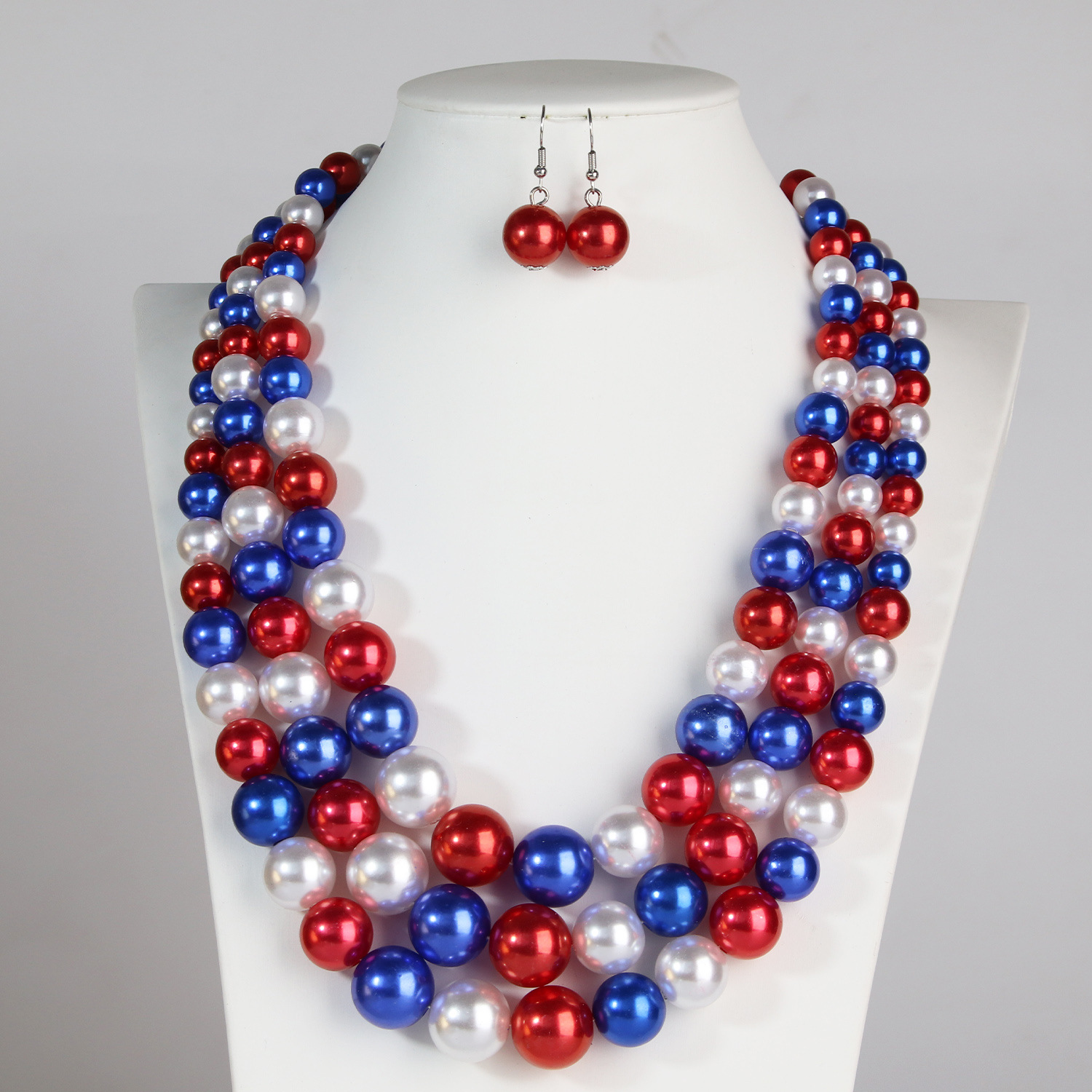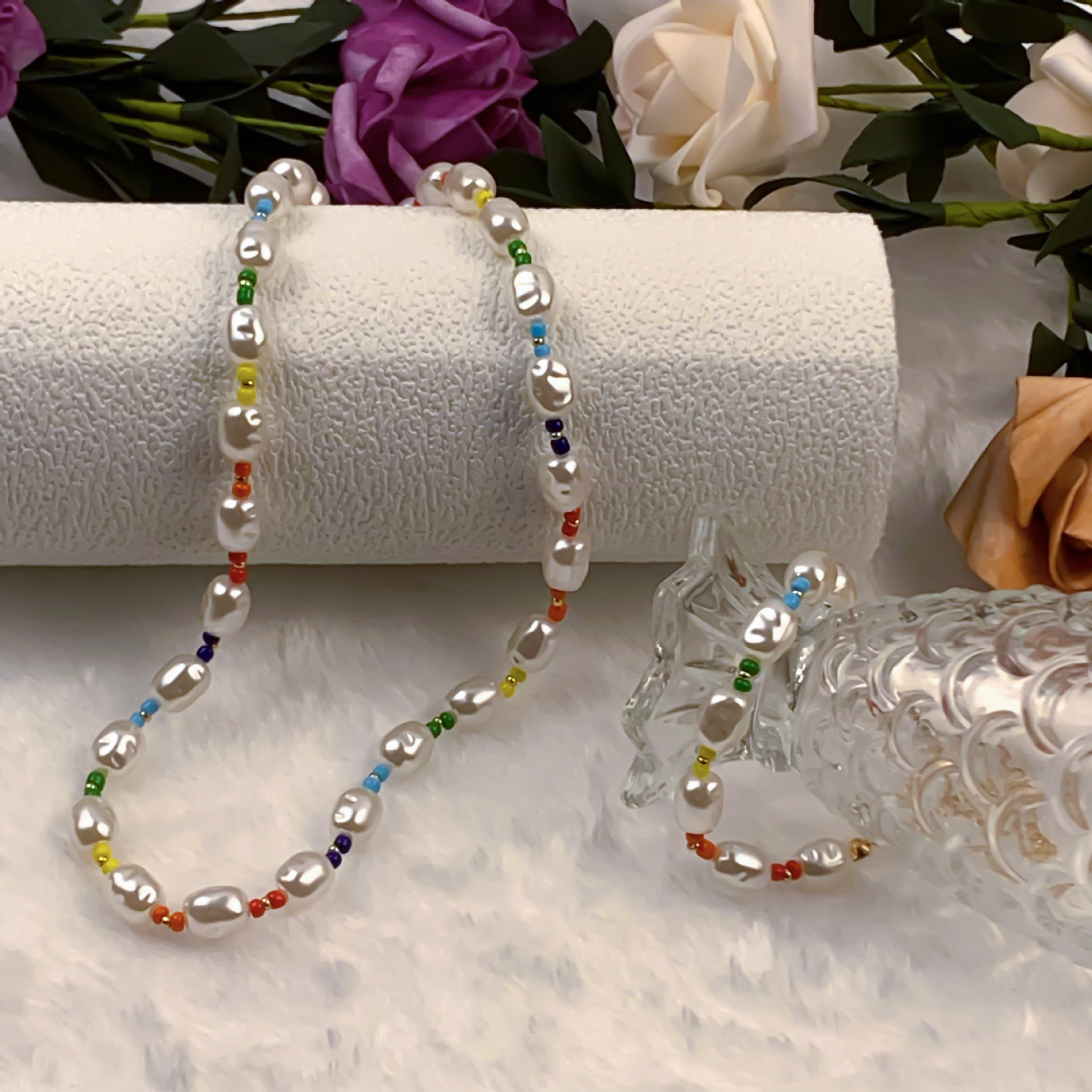 Cross Border Color Dopamine Imitation Pearl Necklace Bracelet suit Bohemian Ethnic Style Colorful Pearl Necklace