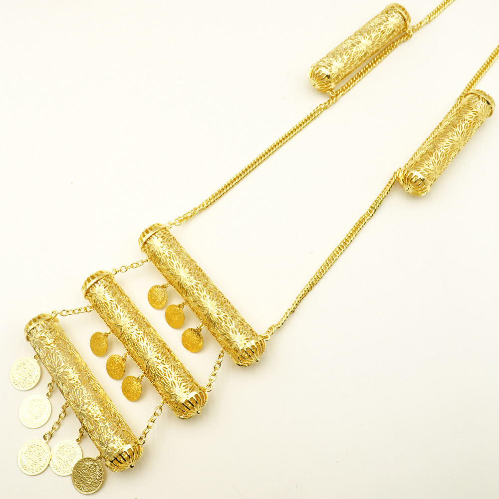 Luxury Bohemian Style Pendant Necklace Pocket Chain with Gold Coin Chandelier Wedding Evening Festival