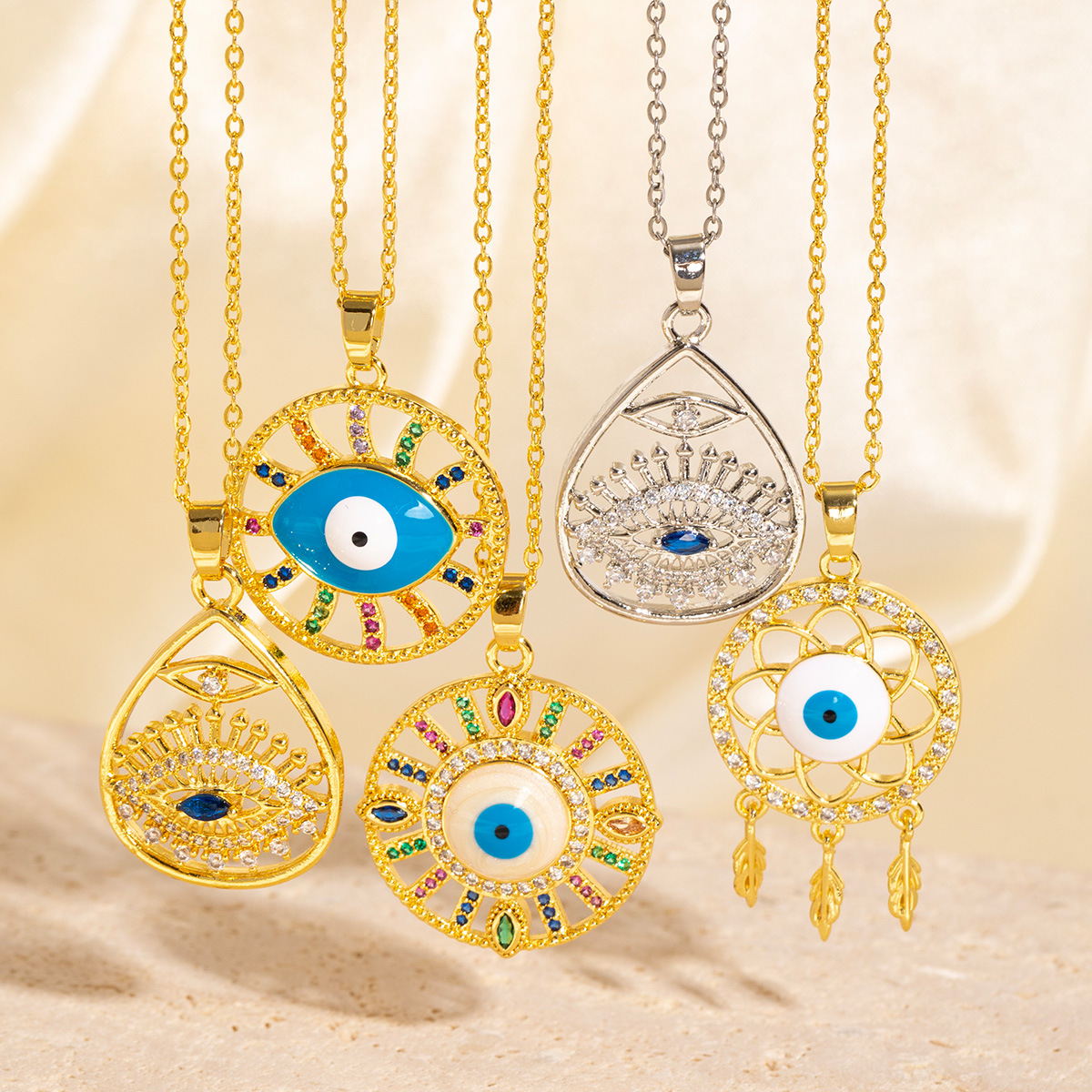 Cross-border Supply Bohemian Style European and American Fashion Drop Oil Zircon Eye Pendant Necklace Women's New Clavicle Chain
