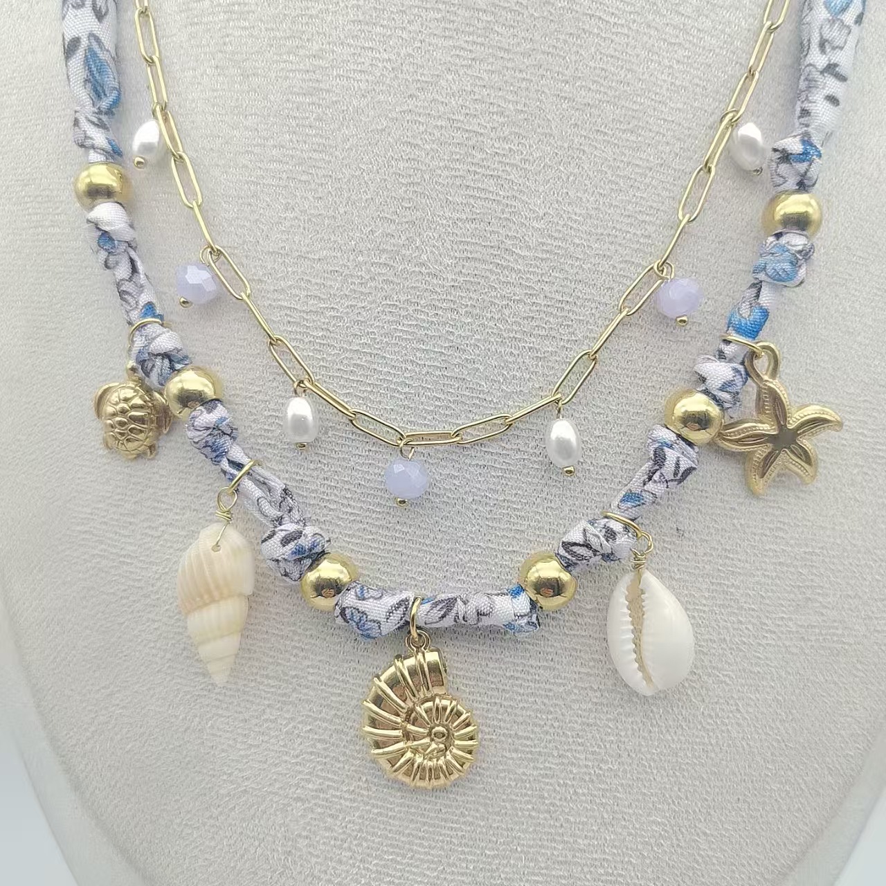 European and American Ocean Wind Necklace New Bohemian Hanging Titanium Steel Pendant Summer Beach Shell Starfish Double Neck Chain
