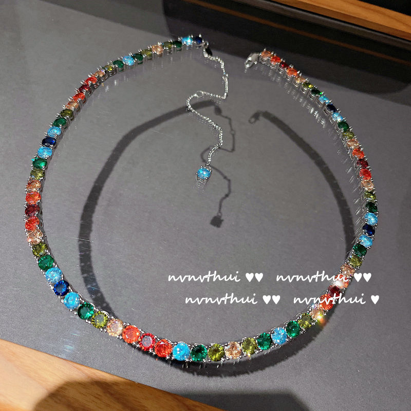 Vintage Oil Painting Color Treasure Necklace Plated 18K Gold Bohemian Gradient Color Zircon Full Diamond Neck Chain choker