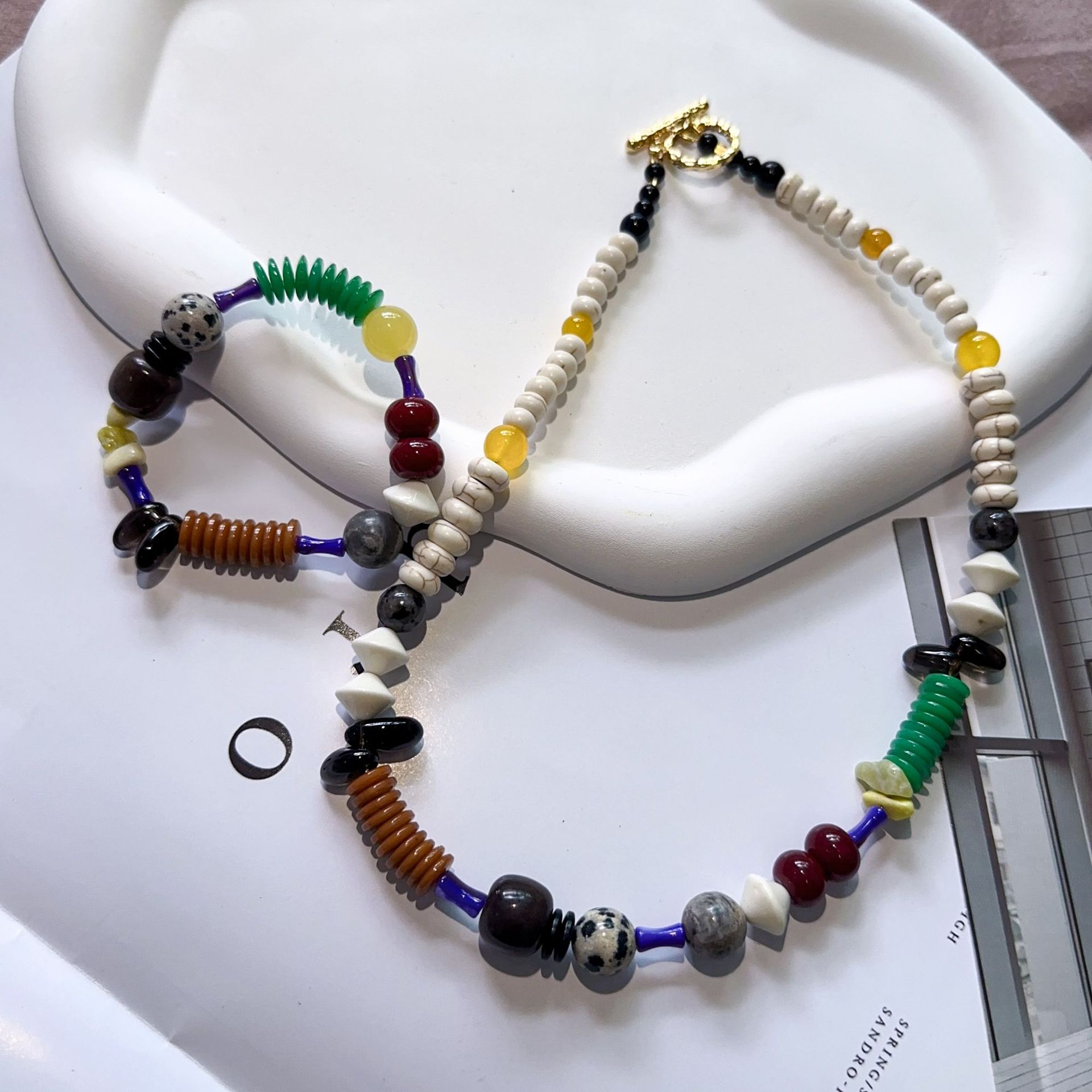 More than 2024 precious stones in ancient colorful niche hand-made bohemian retro natural stone beaded necklace