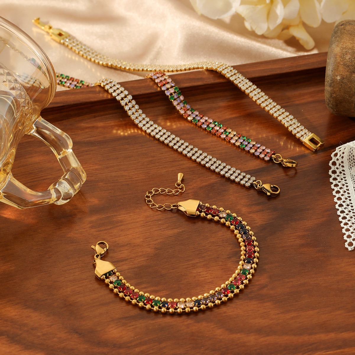 Bohemian Style Colorful Zirconium Beaded Bracelet Clip-on Full Diamond Stainless Steel Hand Rope Retro Style Style Rai Diamond Hand Decoration