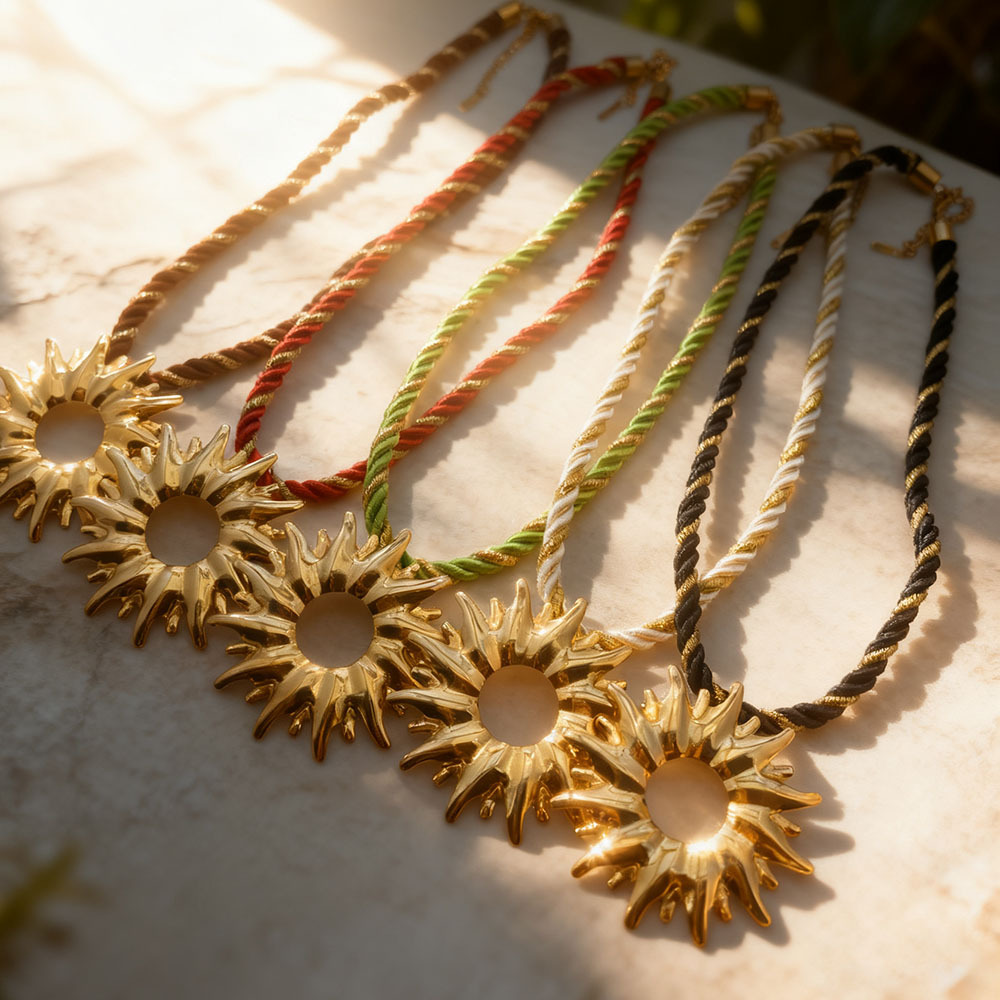 Cross-Border Retro Bohemian Geometric Exaggerated Sunflower Rope Chain Necklace Women's Niche Holiday Style Neck Necklace