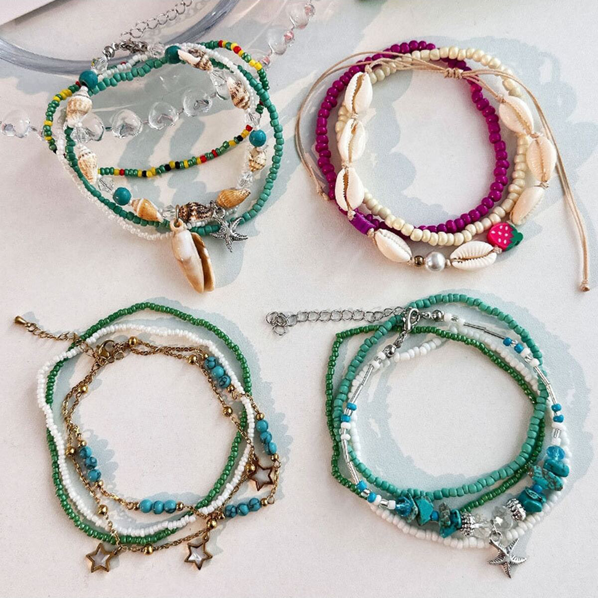 Summer Limited Bohemian Ethnic Style Beach Starfish Shell Bracelet Anklet Adjustable Travel Commemorative Jewelry