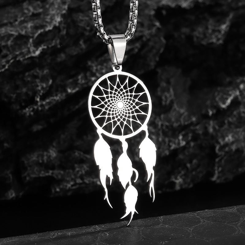temu European and American Bohemian Ethnic Style Stainless Steel Jewelry Tassel Feather Long Dream Catcher Film Necklace