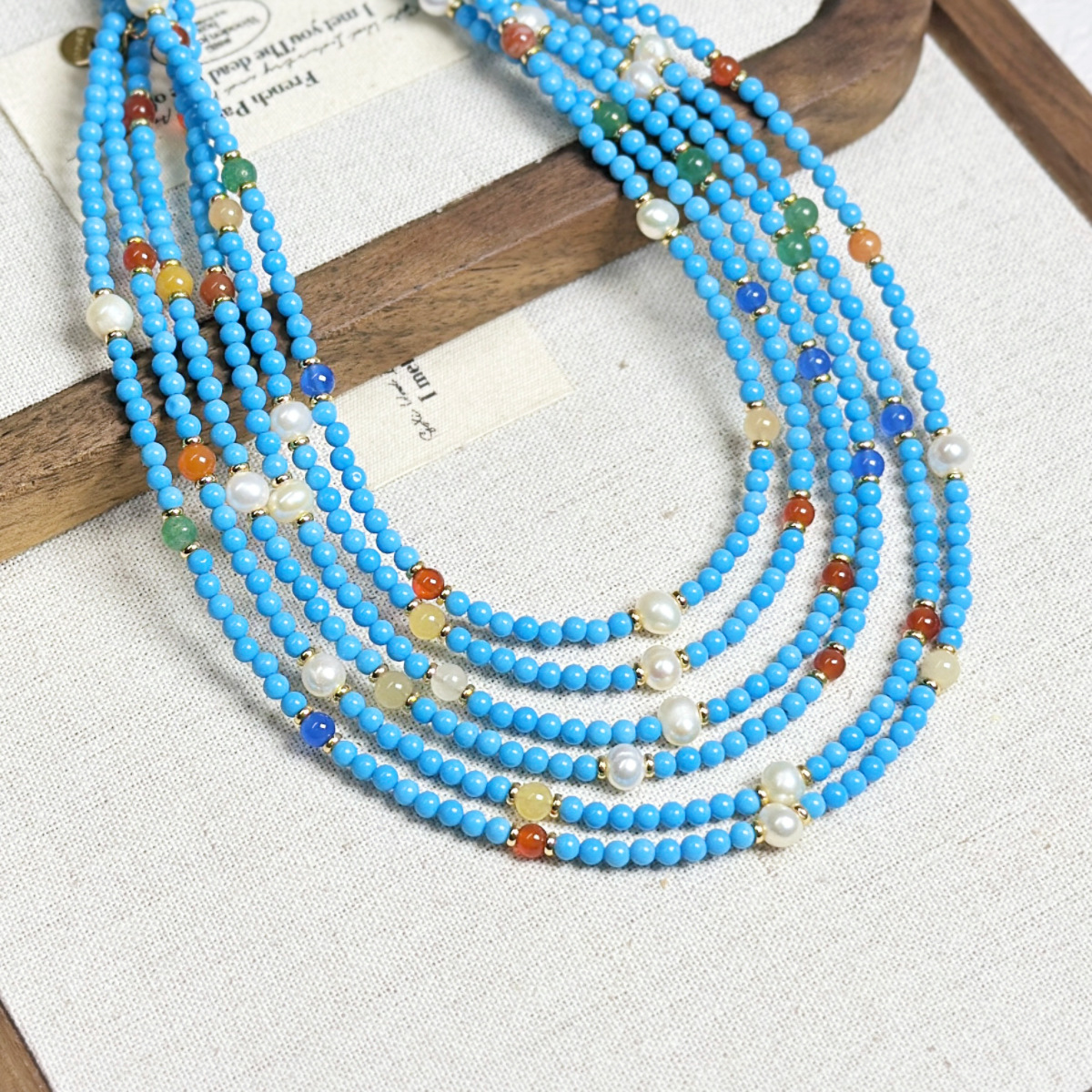 Retro Turquoise Bohemian Necklace Women's Niche Freshwater Pearl Natural Stone High-End Clavicle Chain Versatile Necklace